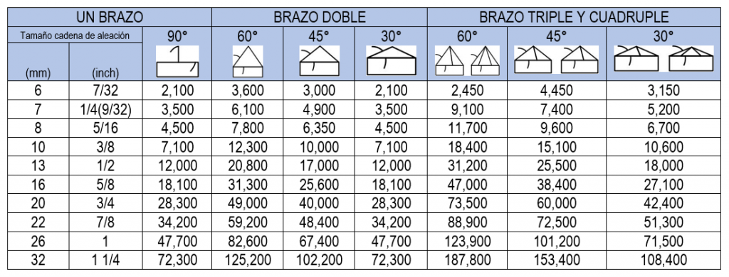 Eslingas de Cadena Cuádruple con Eslabón Maestro y Gancho de Amarre.